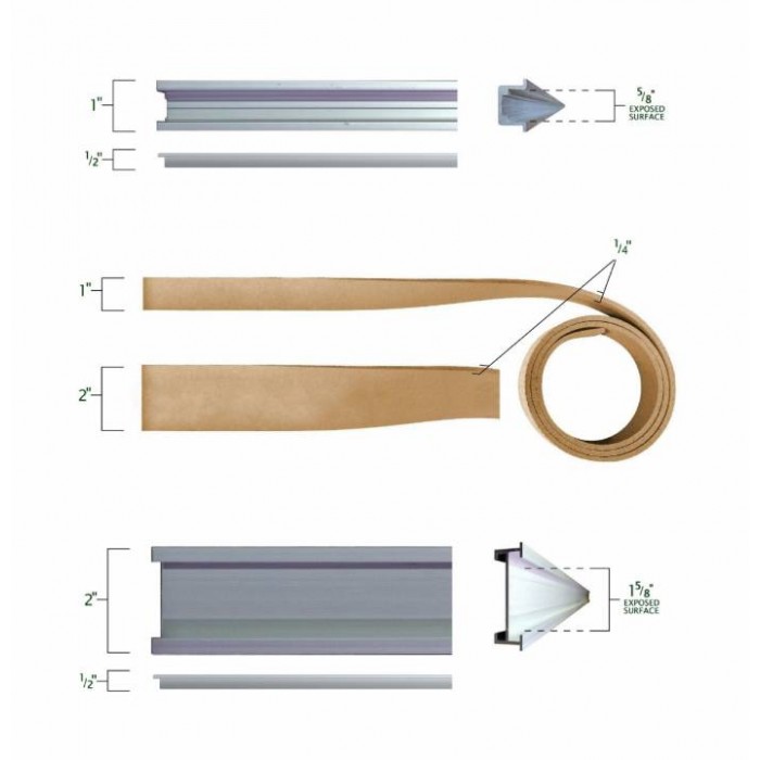 - 5/8” x ½” or 1-1/2” (1” or 2” Rail)