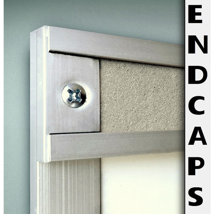 End caps for Cork Display Rails, by Educational Equipment, are a small but vital addition to your display units. End Caps offer a sharp, clean looking edge to the end of the piece. They hold the cork tightly in place and extend the overall life of the unit. They’re also an excellent match to the anodized aluminum frame that surrounds the cork. End Caps will fit snugly on to any of our Educational Equipment Display Rail Units, including the variable depths from the rail to the wall.